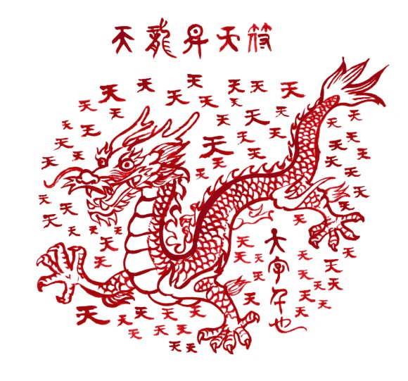 원래 하늘 天을 천 번 쓰고 승천하는 용을 그리는 것인데 그것을 대신하여 天字千也라 썼다. 하늘은 이렇게 하면 납득하신다.