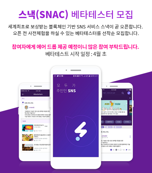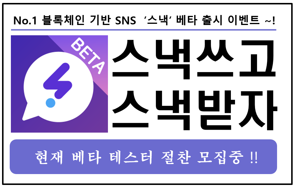 오늘은 No.1 블록체인 기반 SNS 서비스 '스낵'의 대형 이벤트를 소개하고자 합니다.