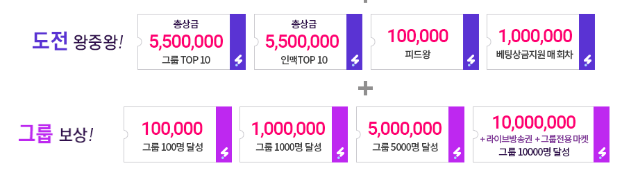 해당 그룹 TOP 10 에 선정 되면 총 상금 5,500,000 SNAC