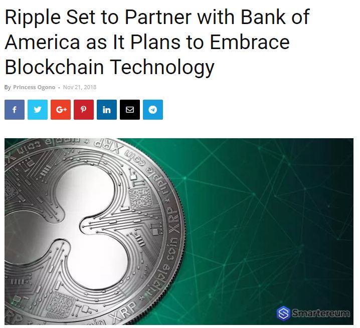 리플이 최근에 뱅크오브아메리카와 제휴를 맺을 것이라는 루머가 돌고 있습니다.