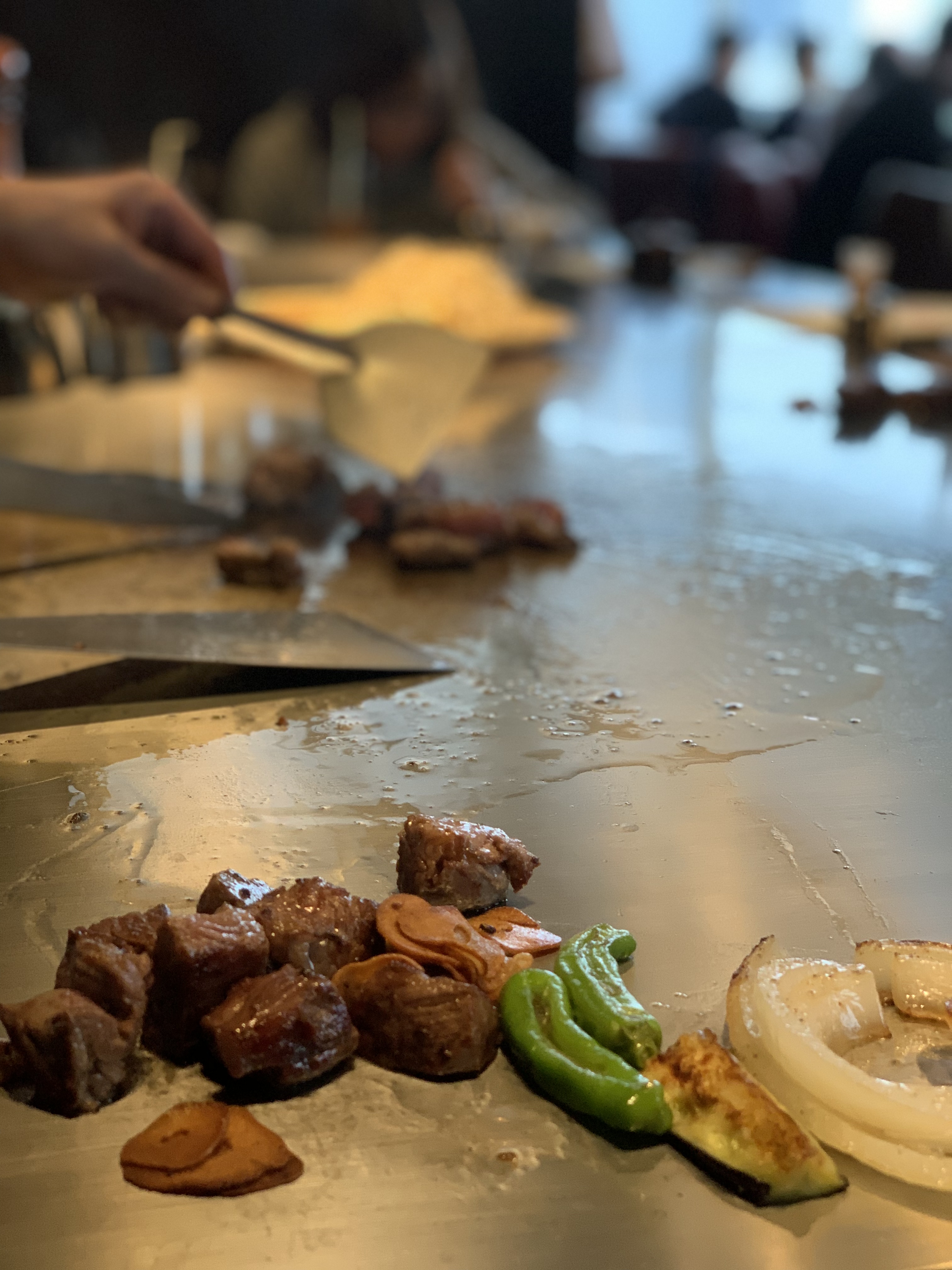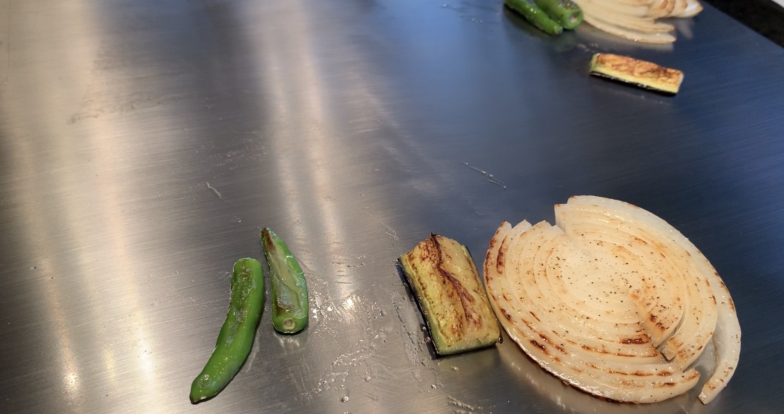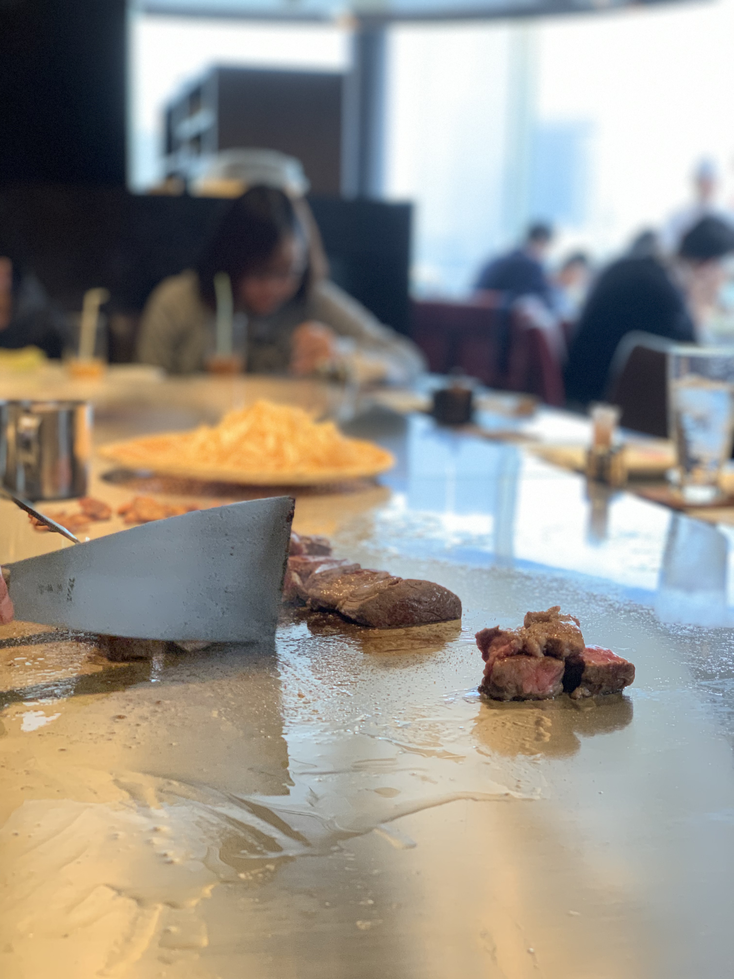 눈으로 보고 고소한 기름향, 치이이익 고기 굽는 소리 듣는 재미! 오감이 함께하는 철판구이 앞에서 먹으니 맛은 배가 되는 것같다.