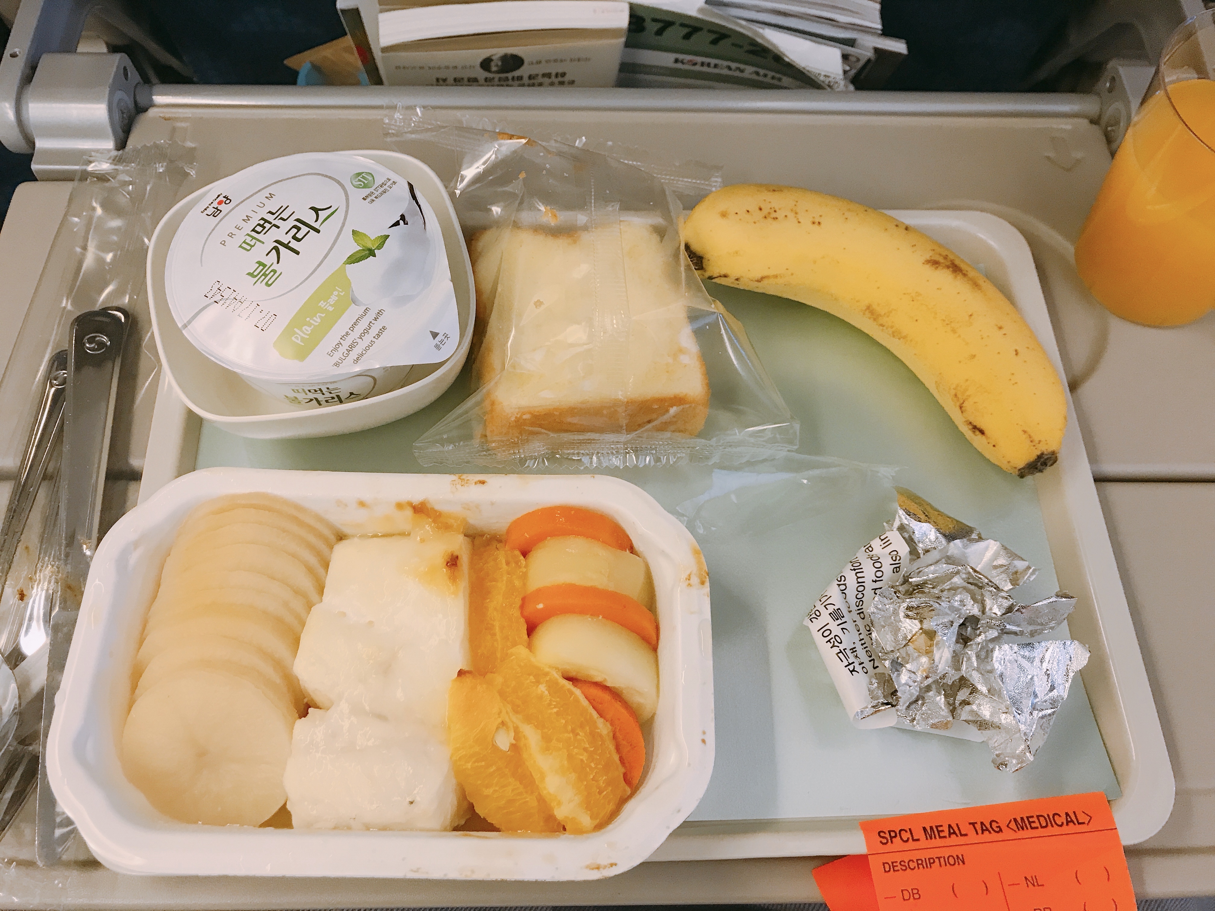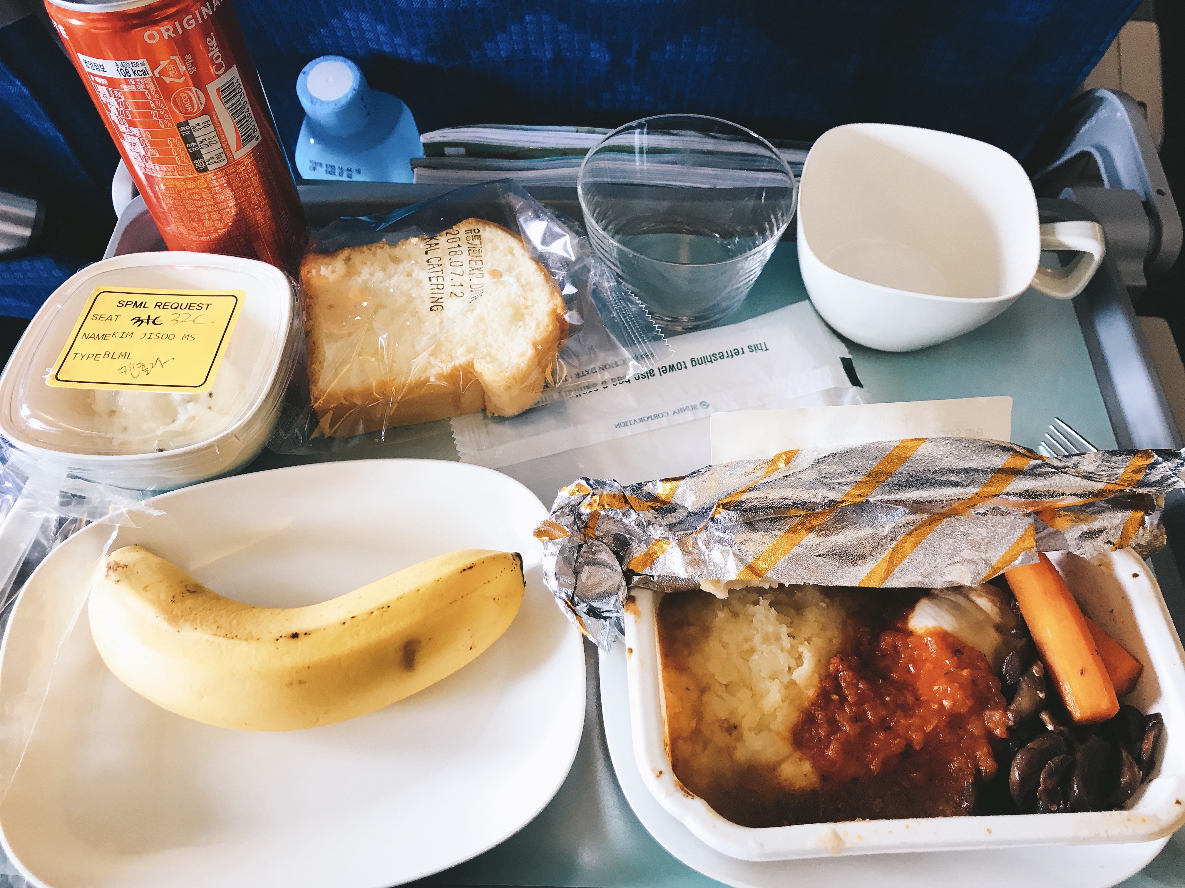 대한항공을 타고, 모닝캄의 특권인 특별기내식을 신청했어요.
