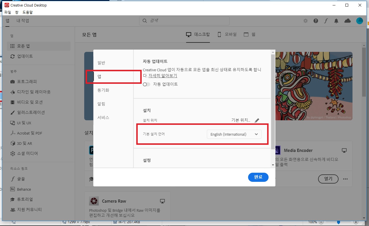어도비 포토샵 영어로 설치하는 방법