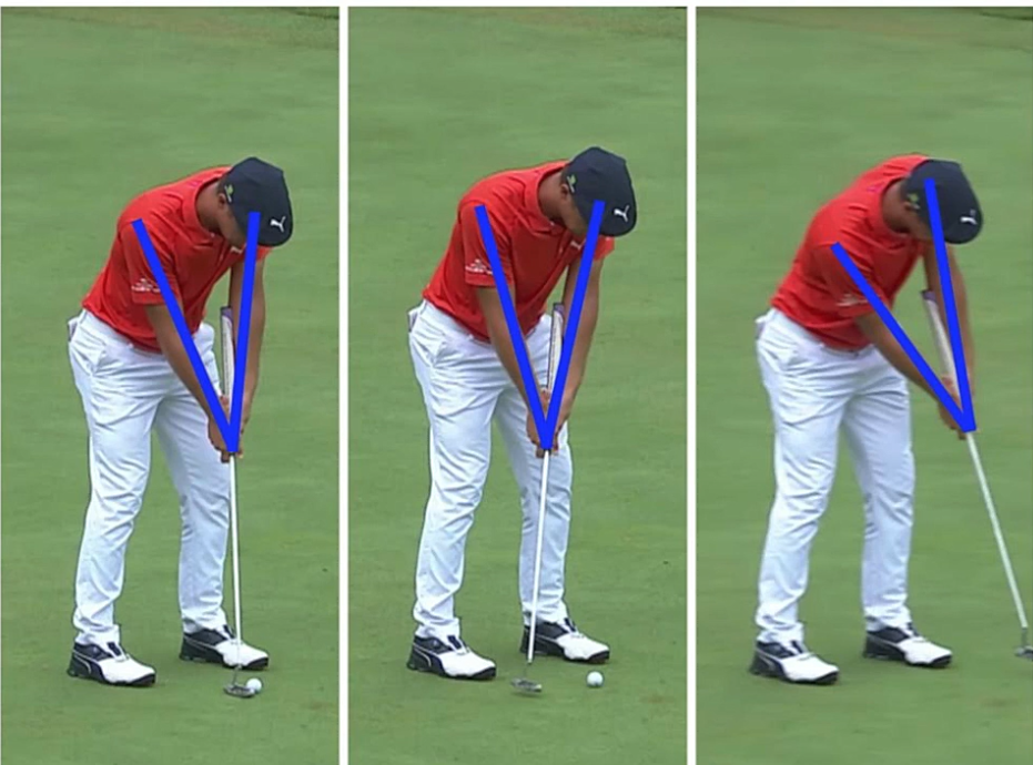 모든 골프 선수가 그렇듯이 Bryson DeChambeau도 퍼팅 때문에 고민을 많이 하였다고 합니다. 브라이슨이 하는 퍼팅이 약간 독특합니다. 이번 대회에서 아주 효과를 보았다고 합니다. 브라이슨의 퍼팅 방법은 아래 그림과 같습니다.