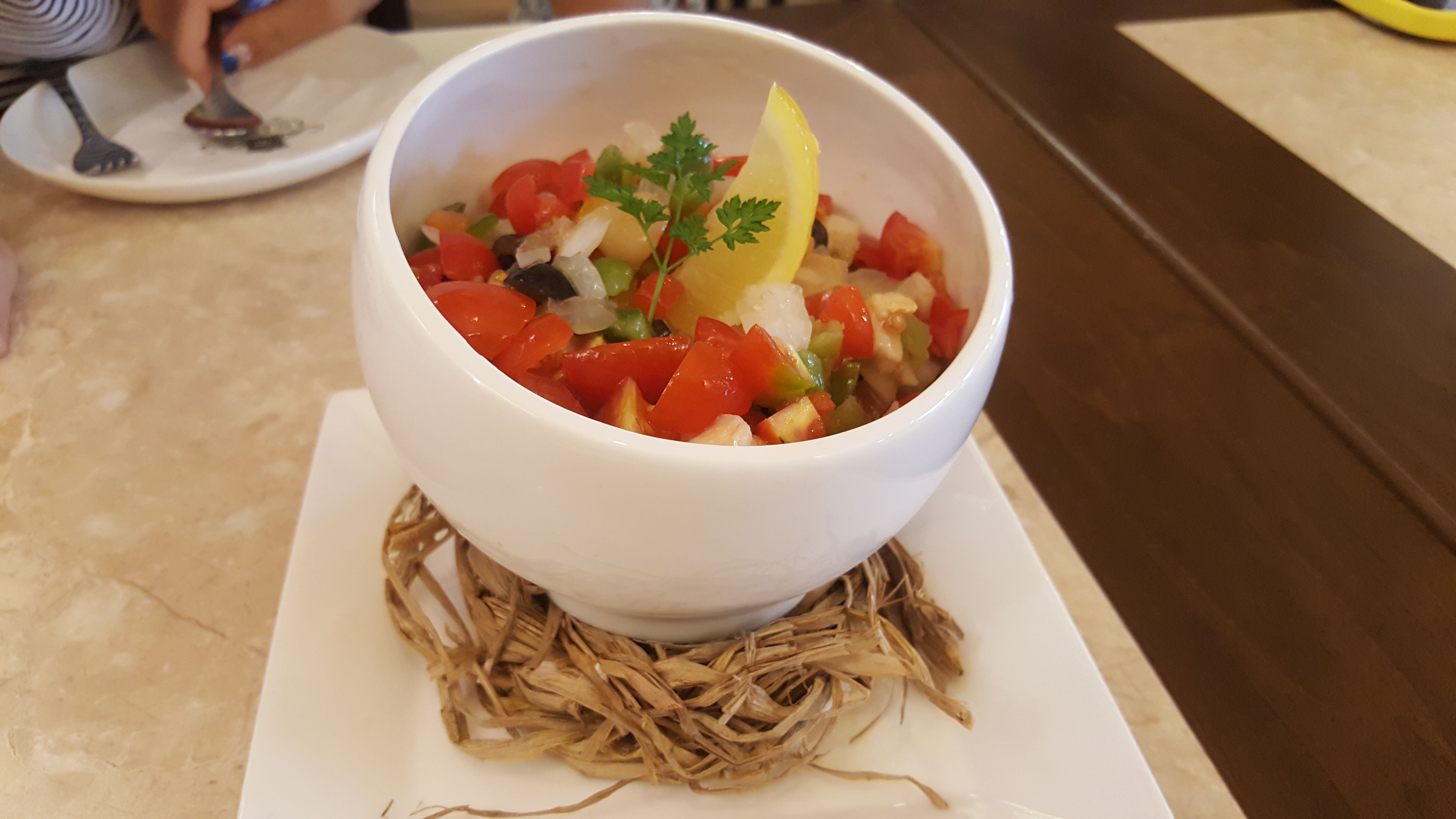 지난번에는 메인 메뉴 위주로만 주문했었는데, 이번에는 날이 날인 만큼 샐러드부터 시작해 봅니다. "살피콘(Seafood Salpicon Salad)" 피조개, 문어, 새우를 곁들인 지중해식 샐러드...라고 메뉴판에 써 있습니다. 이렇게 커다란 그릇(?)에 담겨 나오는데 각자 접시에 나눠서 먹어보니 새콤달콤~아주 식욕을 자극합니다. 다음에 가서도 시켜먹을 생각입니다.