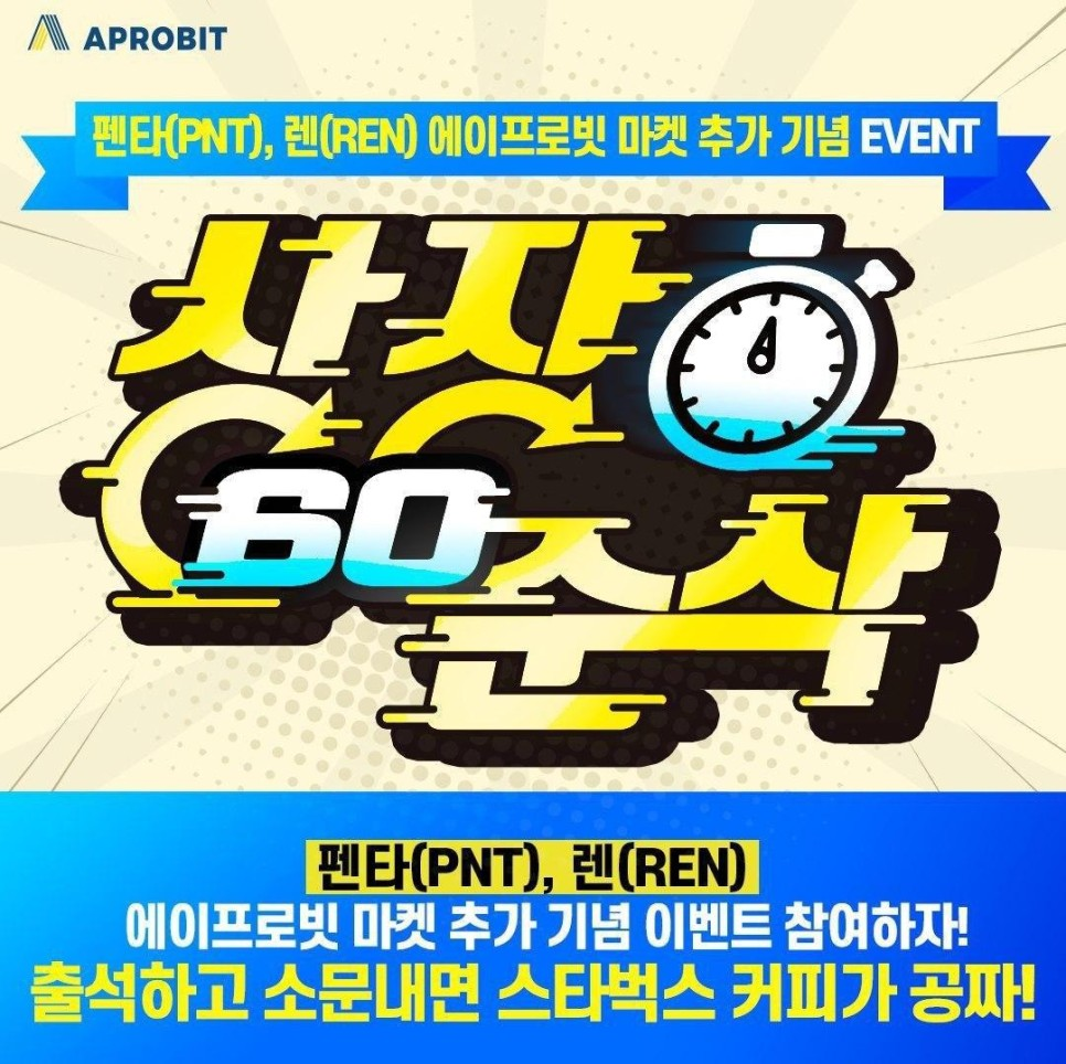 에이프로빗, 피네트워크(PNT), 렌(REN) 마켓 추가 기념 상장순삭60 이벤트