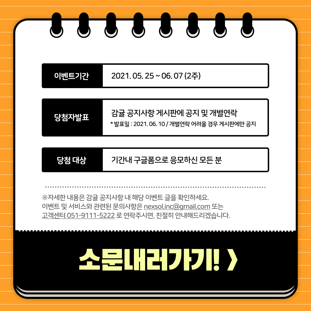 - 이벤트 및 서비스와 관련된 문의사항은 nexsol.inc@gmail.com