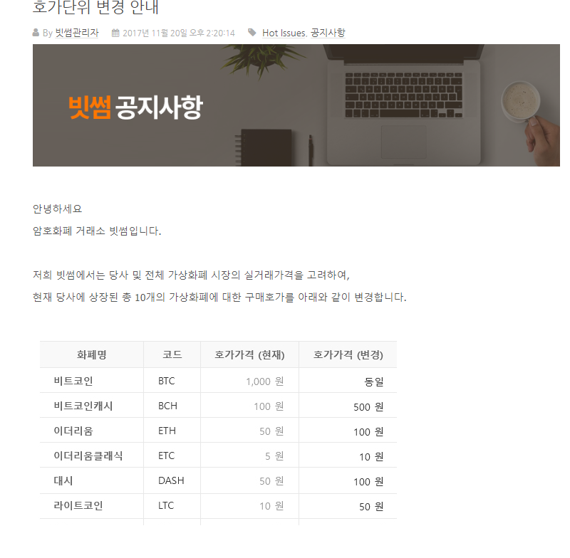 방금 올라온 새로운 공지는 앞으로는 공지를 하고 호가단위를 바꾸겠다입니다.