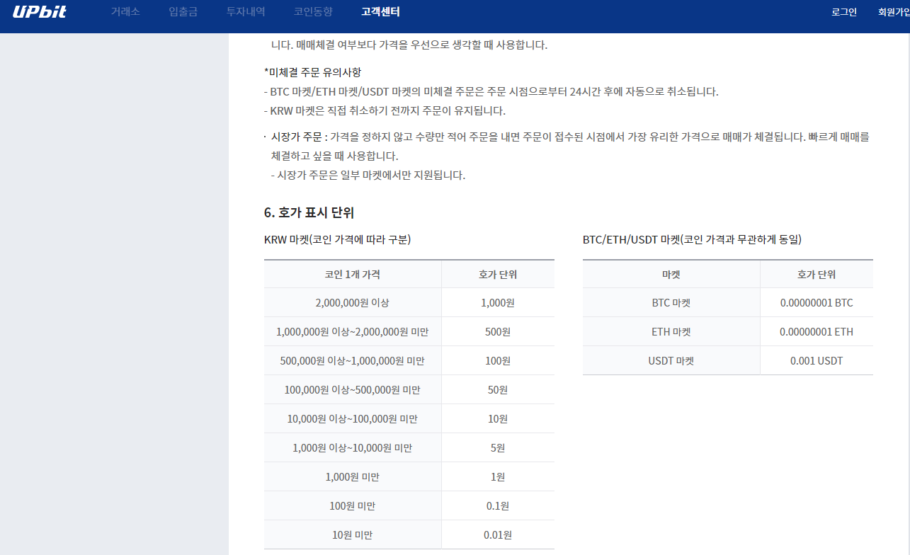 업비트 같은 경우는 호가 단위에 대한 분명한 방침이 있고, 이에 대한 내용이 공지되고 있습니다.