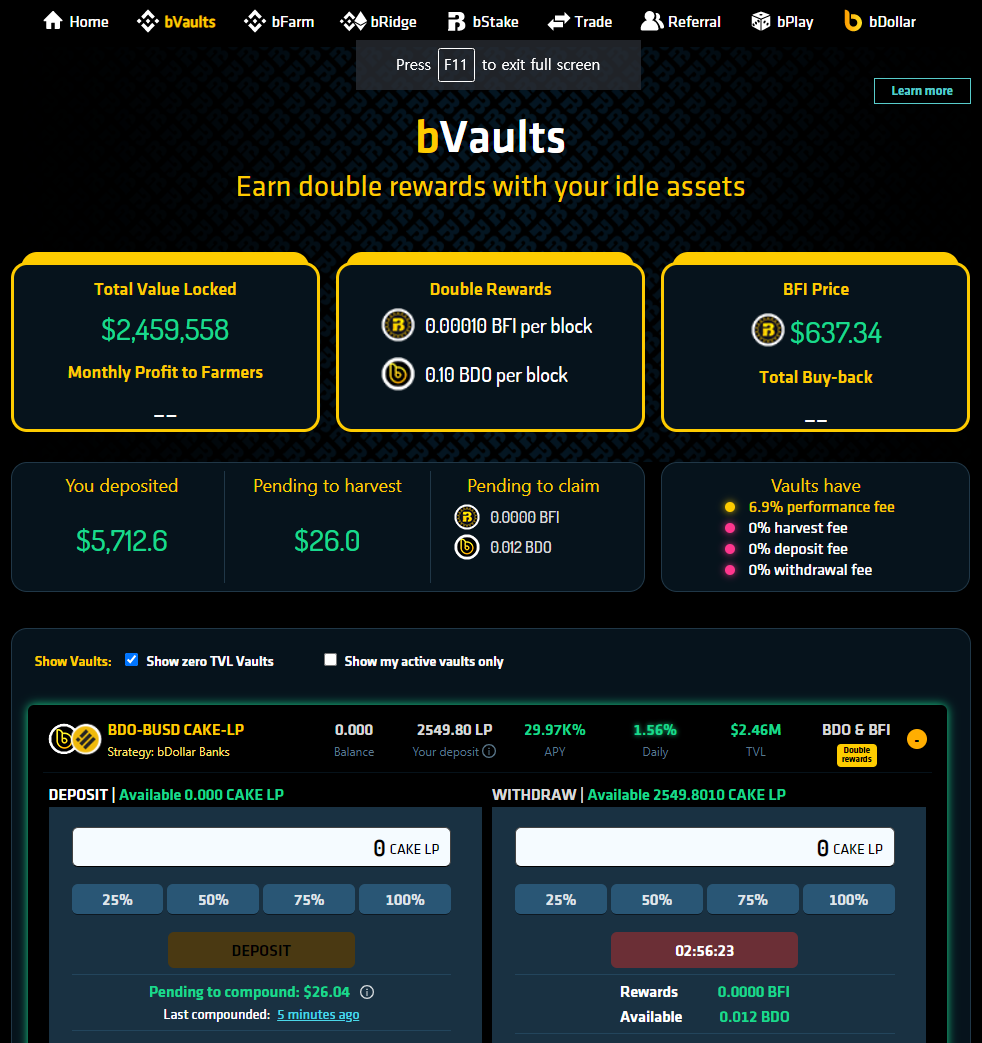 최근 bDollar로 유명한 bearn.fi에서 BDO-BUSD LP 한정으로 bVaults를 출시하였습니다.