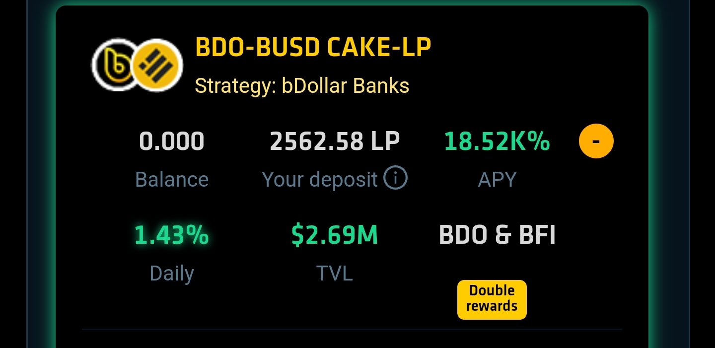 이게 참 수익율도 좋지만 재미난게 APY 외에 BDO와 BFI를 Double rewords를 제공하면서