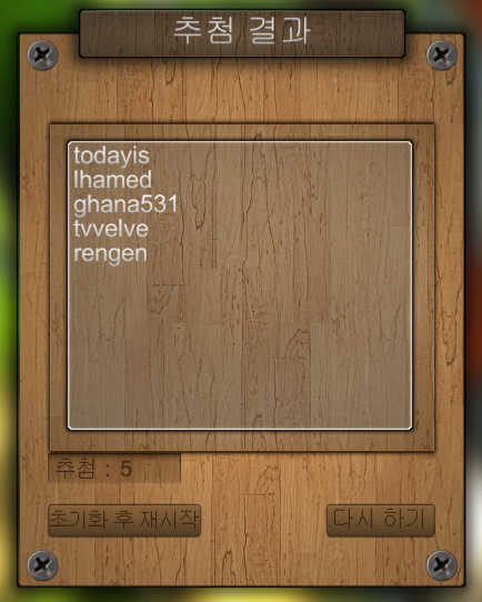 @todayis, @lhamed, @ghana531, @tvvelve, @rengen님이 당첨되셨습니다.