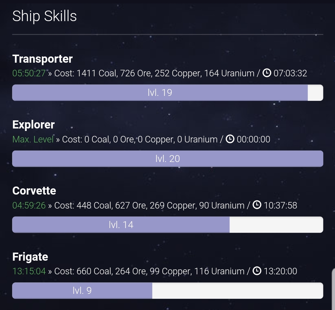 넥스트콜로니 요즘...walktoheaven (72)in #kr • 7 years ago 요즘 비행선 업그레이드에 열중하고 있습니다. 탐험선은 진작 렙20 올려놨었고 이제 겨우 수송선 렙20으로 렙업중입니다. 콜벳(초계함)은 렙20까지 3일정도 걸릴것 같습니다. 며칠전 업데이트로 전쟁이 가능하게 됐는데 아직까지는 전투함 1대도 생산을 못하고 있는 실정입니다. 며칠후 콜벳 생산이 가능하게 되면 전쟁도 하고 게임이 재밌어질거 같네요. #jjm #mini #ssc #nextcolony