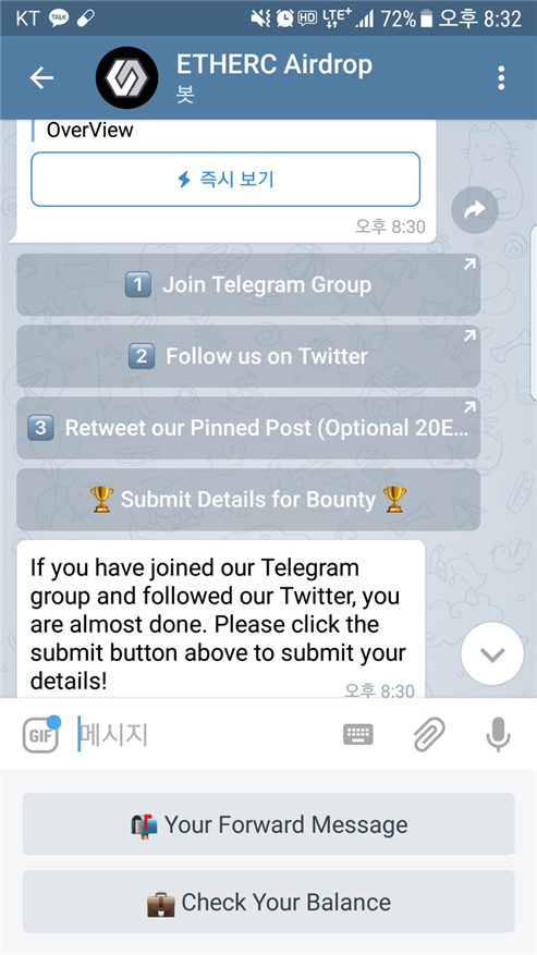 STEP5. 봇 안내에 따라서 이더 주소, 이메일 주소 기입하면 완료!