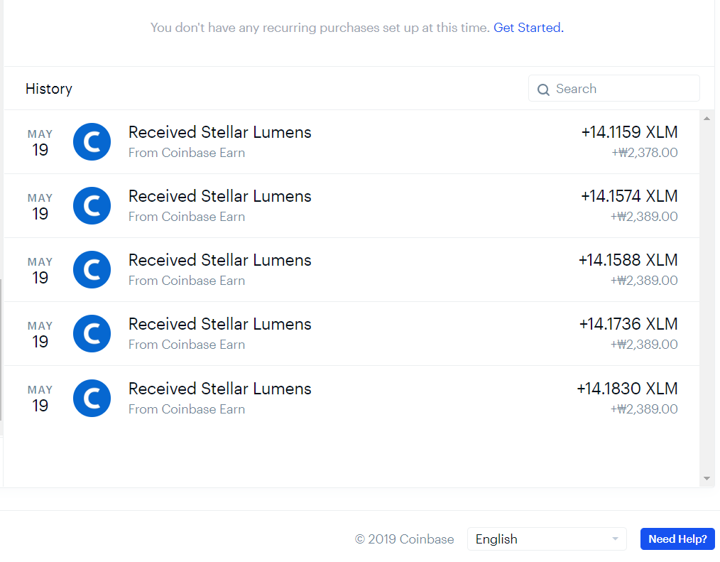 그리고 나서 아래 링크로 퀴즈 진행하시면 총 70.78개의 스텔라루멘이 코인베이스 지갑으로 들어옵니다.