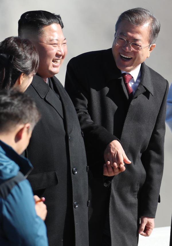 지난 9월 백두산 정상에 오른 문재인 대통령과 김정은 국무위원장 / 평양사진공동취재단
