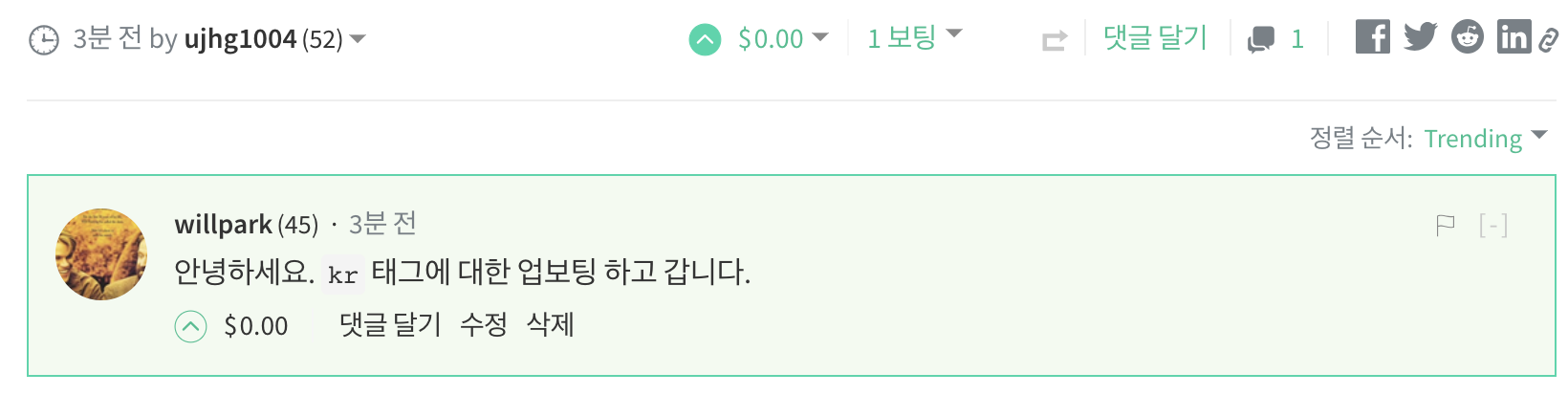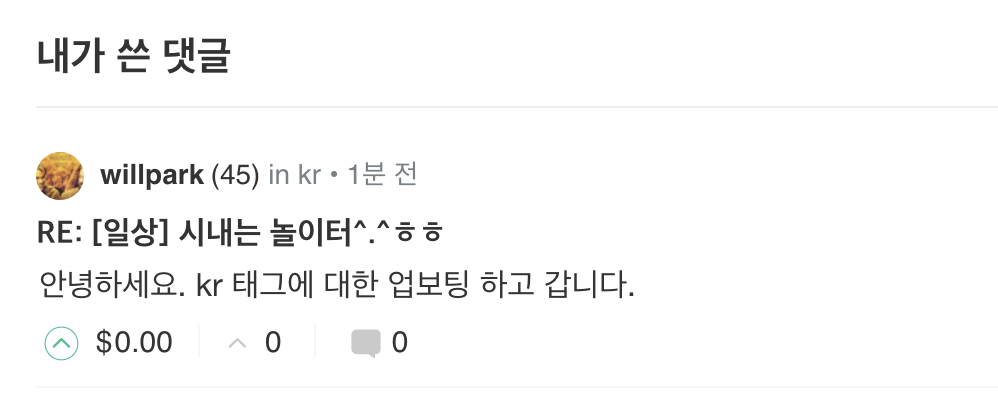 스팀으로 가서 작성한 댓글 및 해당 전체 글을 확인하면, 댓글과 보팅이 잘 이루어진 것을 확인할 수 있습니다.