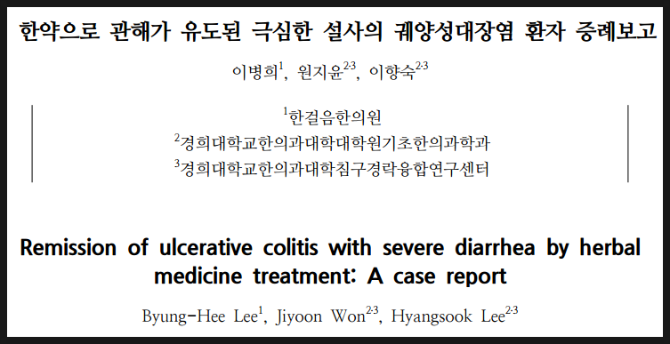 염증성 장질환(크론병, 궤양성 대장염)의 한약 치료 논문 - 종각 한의원