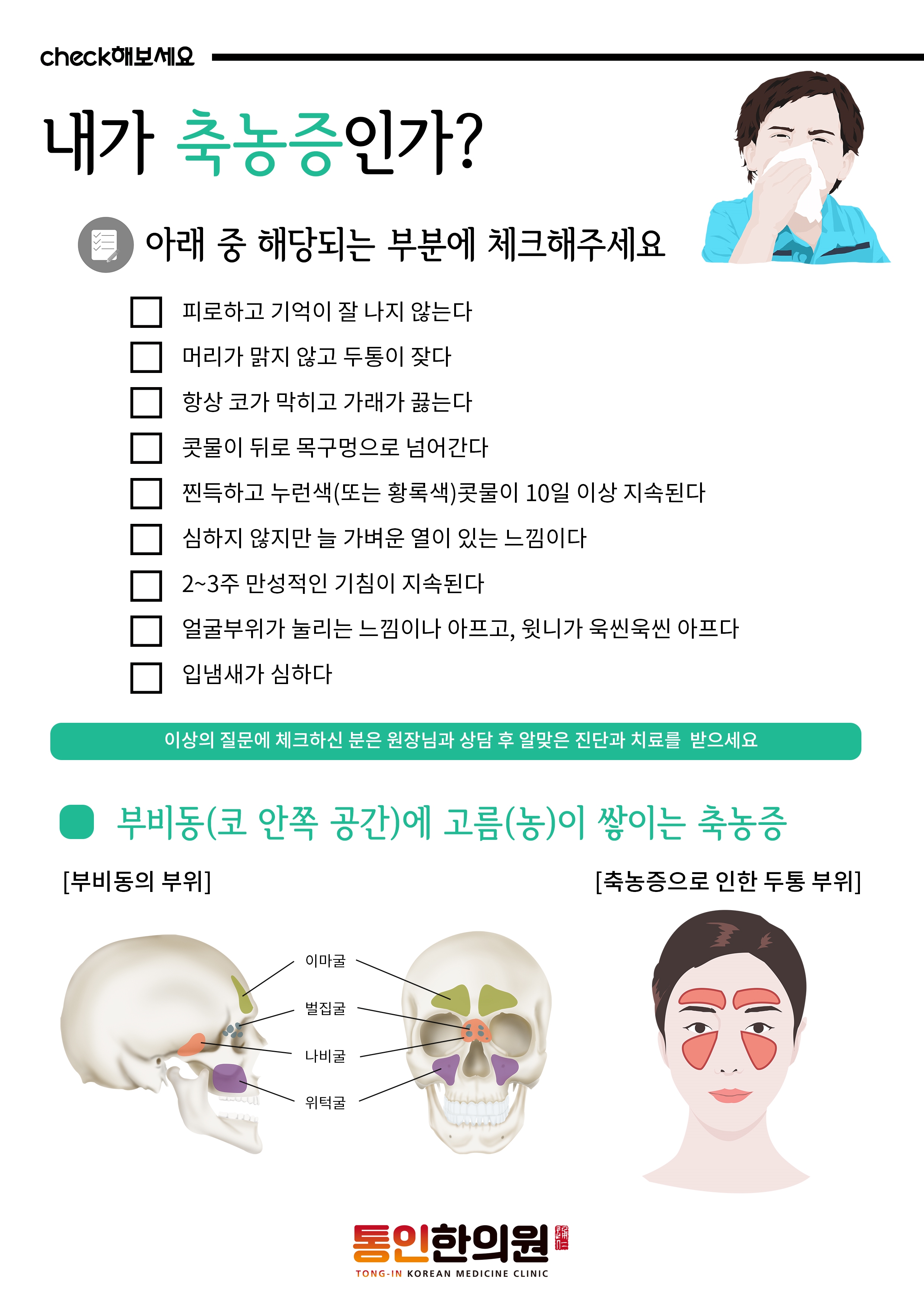 아래와 같은 체크리스트를 보며 축농증에 해당하시는지 체크해보세요!