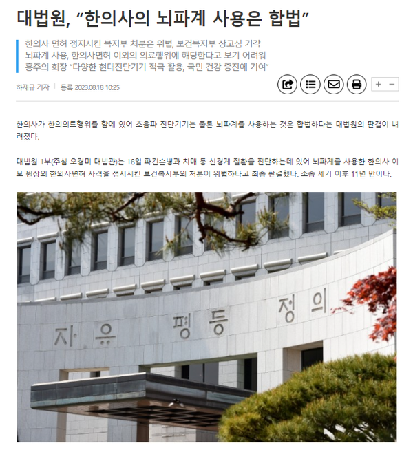 한의사의 뇌파계 사용이 적법하다는 판결을 내렸습니다.