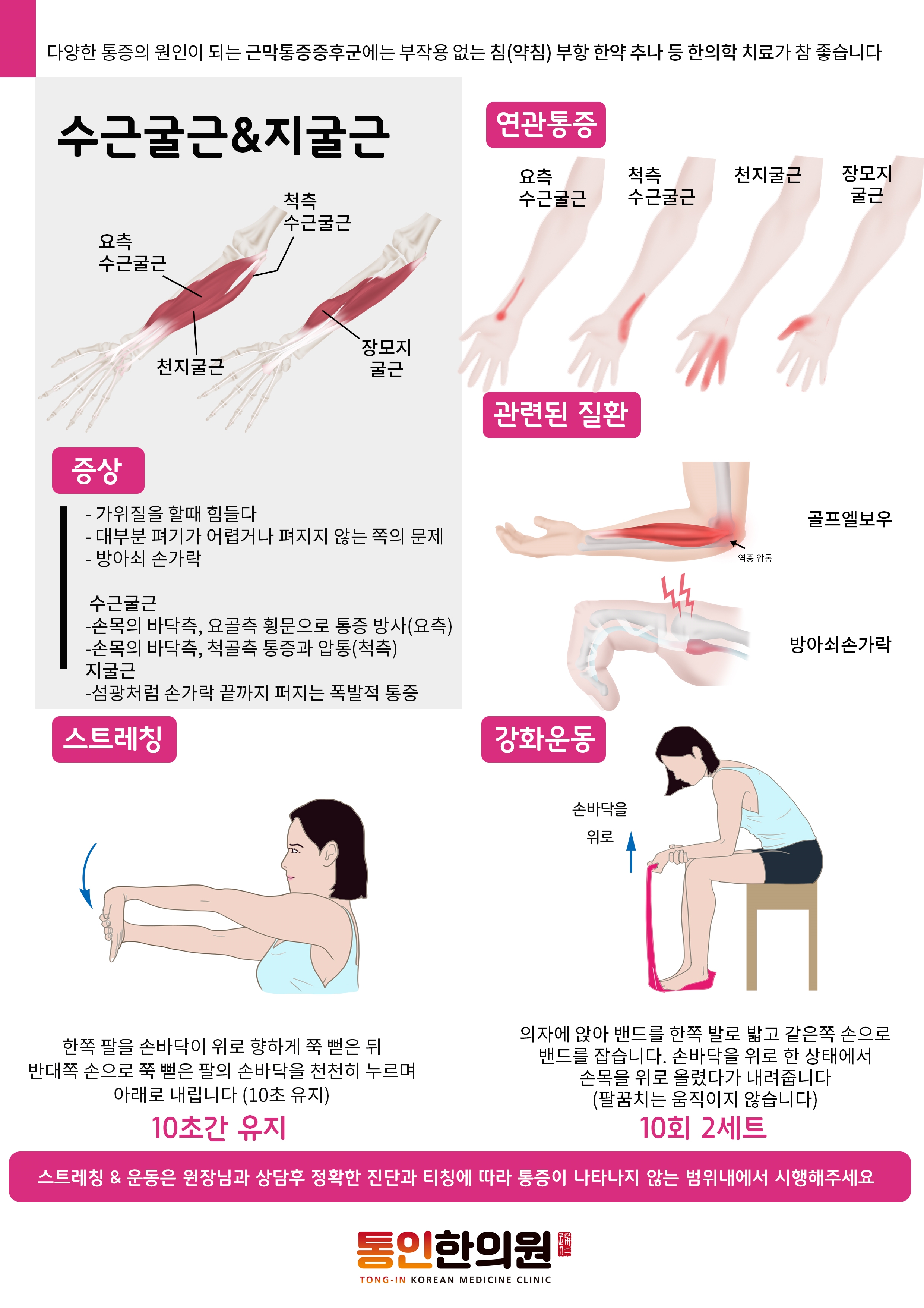 오늘은 팔 통증의 주요 원인이 되는 수근/수지굴근과