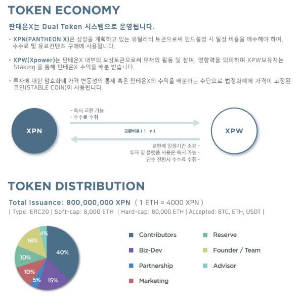 • 총 발행량 : 8억개, 총 토큰의 40%가 판매될 예정
