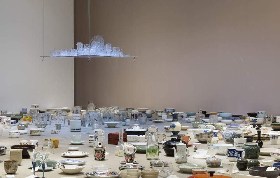 “황연주 작가는 2016년 과천아파트개발로 슬럼화 되어가는 자신의 동네에서 우연히 땅에 반쯤 묻혀 있는 그릇더미를 발견했다고 해요. 그 그릇무더기는 주변 주택에 살던 모 주부가 새 아파트로의 이사와 함께 ‘버린 것’ 같다고 하네요. 황 작가는 그 그릇들을 작업실로 가져와 깨끗이 설거지를 했어요.”