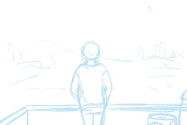 구도와 색을 이용해서 그 감성을 살려볼겁니다. 색은 연보라나 안개낀 파란색 정도가 좋겠습니다. 이른 새벽 하늘의 색이죠.