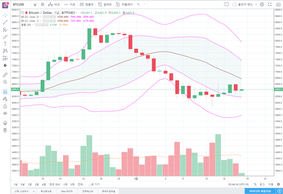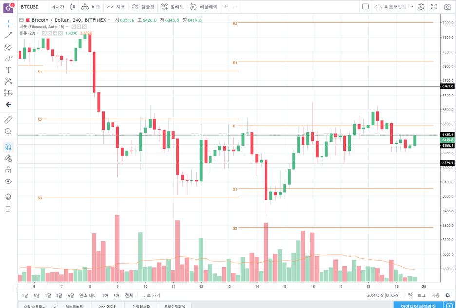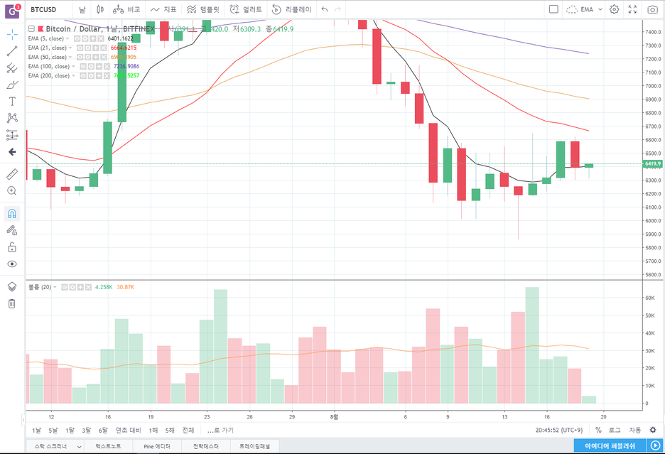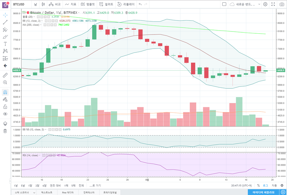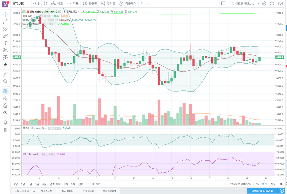 비트피넥스 BTCUSD 4시간봉 바로 보겠습니다.