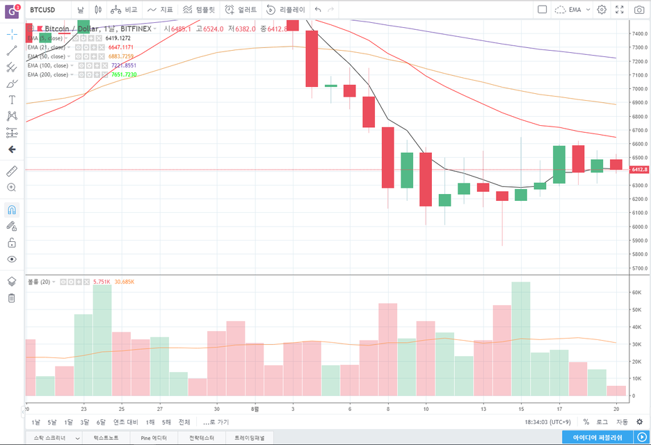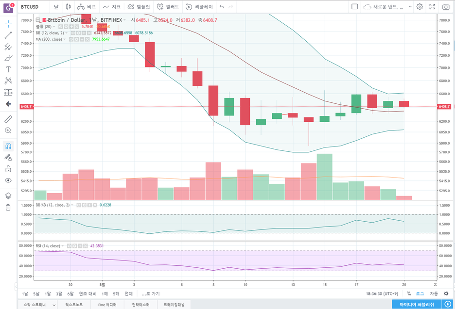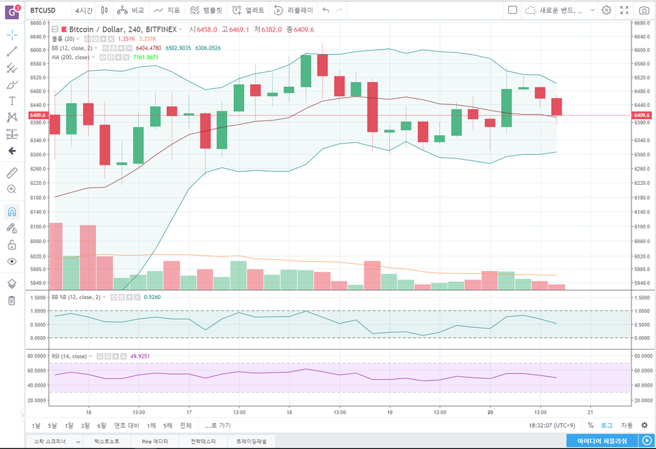 비트피넥스 BTCUSD 4시간봉 보겠습니다.