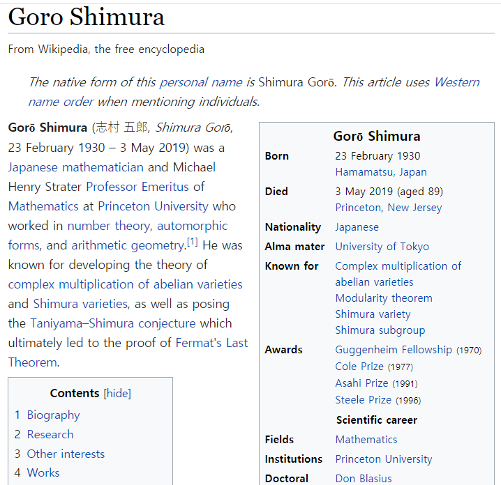 물론 Goro Shimura 선생님이 더 유명하긴 하지만....