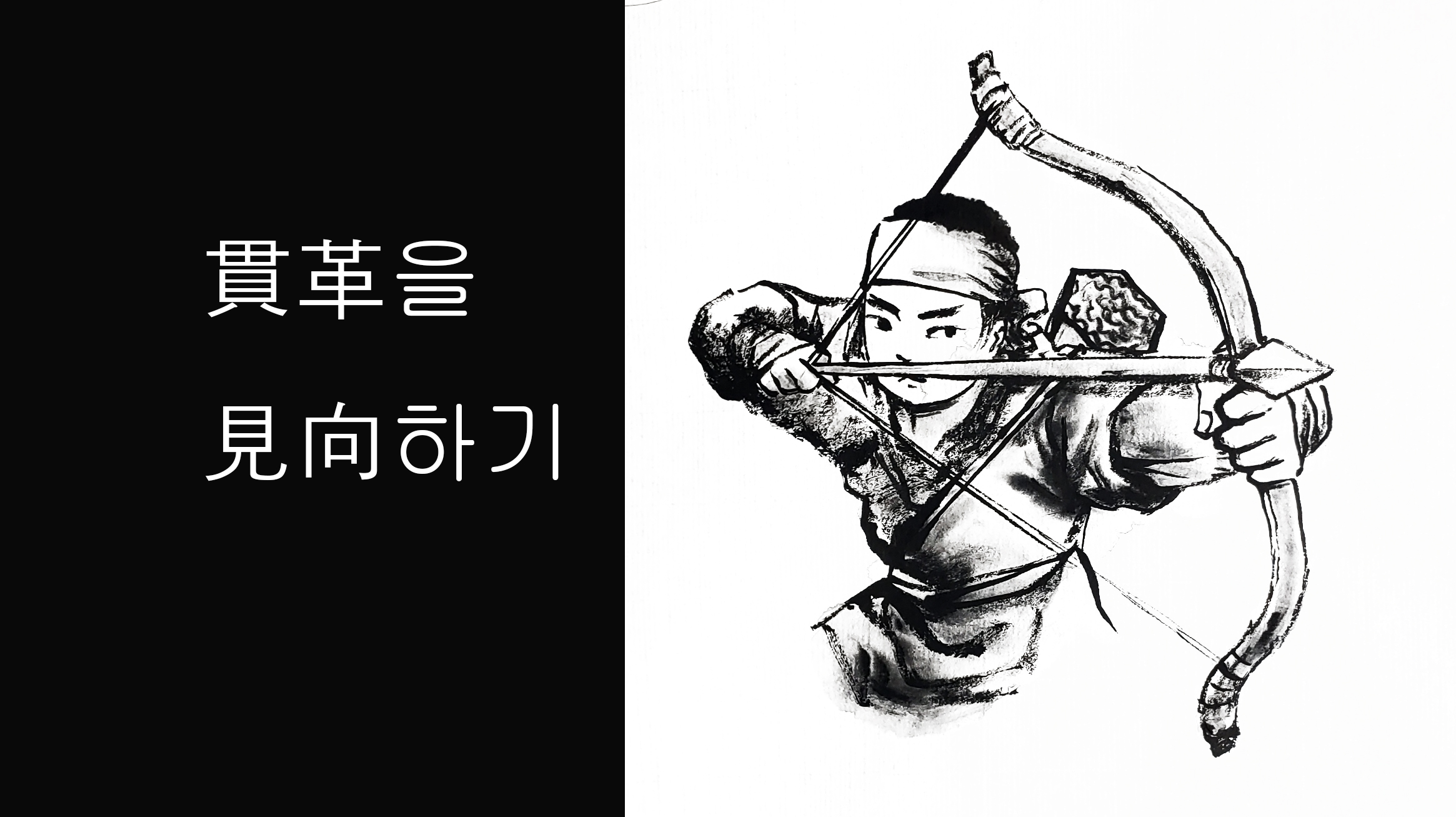 견향(見向)입니다. 목표물을 향해 보는 것입니다. 우리가 활쏘기를 한다는 것은 일상 속에서도 또는 수련 속에서도 그 목표물, 목적지를 명명백백하게 겨냥해야 한다는 의미로 확장됩니다.