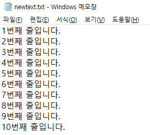 ===================파일을 쓰기 모드로 열어 출력값 적기