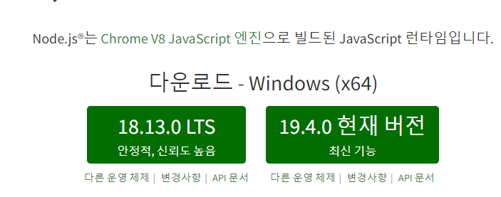 최신버전인 18.13.0 LTS버전을 설치하였다. 설치 후에는 Visual studio 에서 실행을 하였습니다.