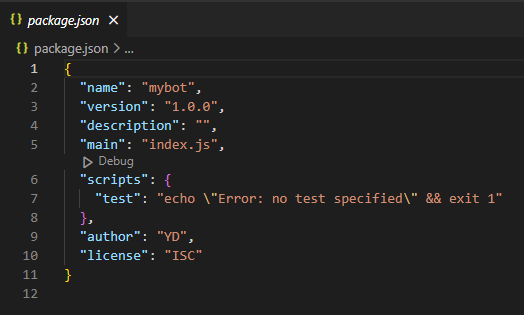 Package.json을 만들었습니다.