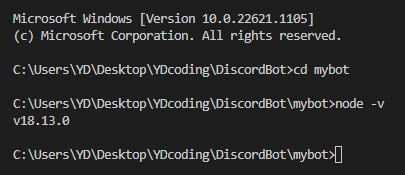 discord.js의 버전 14.7.1이 잘 설치 되었음을 확인할 수 있었습니다.