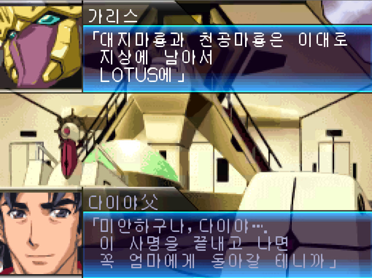 다이야의 부친 : 해야 할 일이 남아 있어. 내가 대제 곁에서 진행시키던 다리우스인을 우주로 이민시키는 방주계획... 다리우스계가 소멸하기 전에 방주를 완성시키고 살아남은 다리우스 인을 새로운 별로 이민시키는 것이 아빠의 사명이란다.