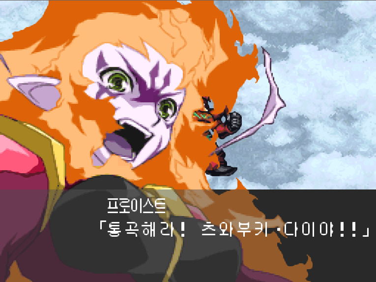 프로이스트 : 츠와부키 다이야, 그리고 지상인놈들! 다시 한번 선언하마... 나 이외의 모든 생물은 말살이다아아앗!!!