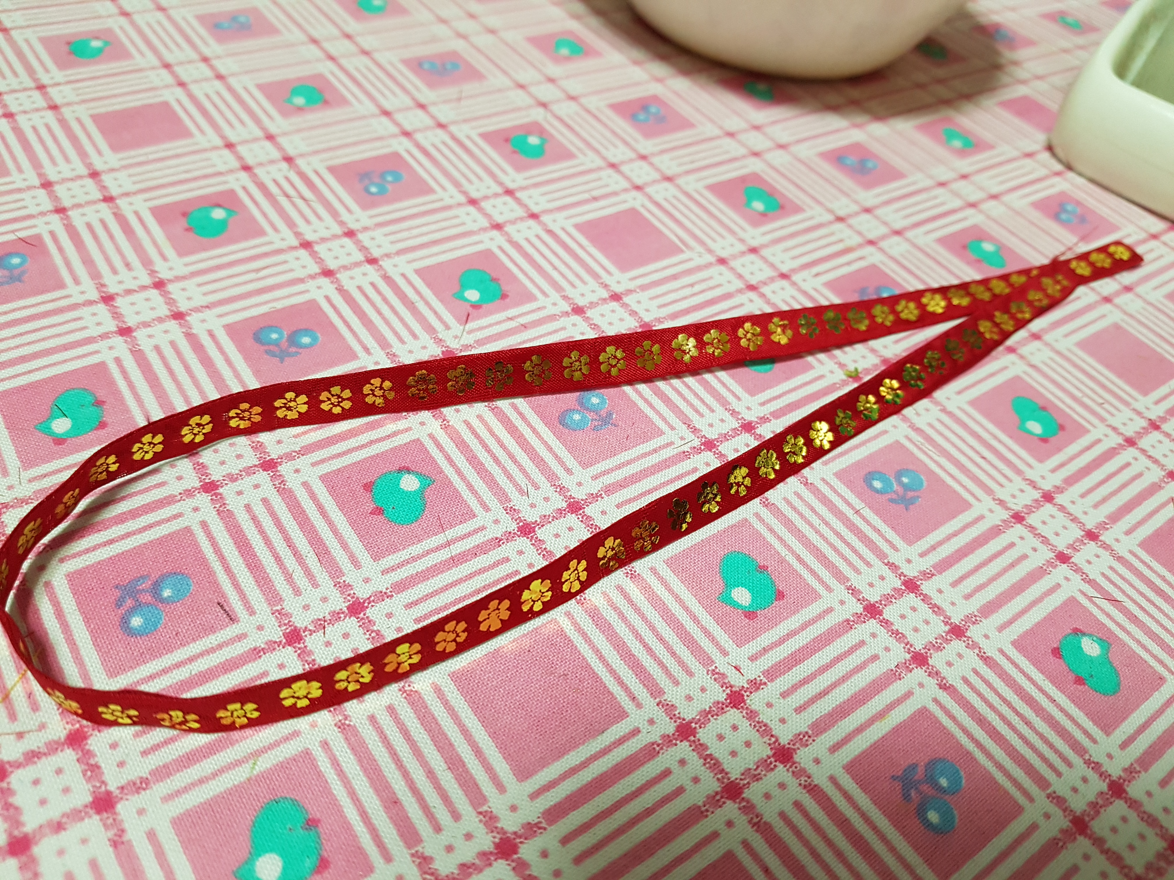 쓸만큼 적당한 크기로 잘라서 원단 위에 맞춰봅니다.