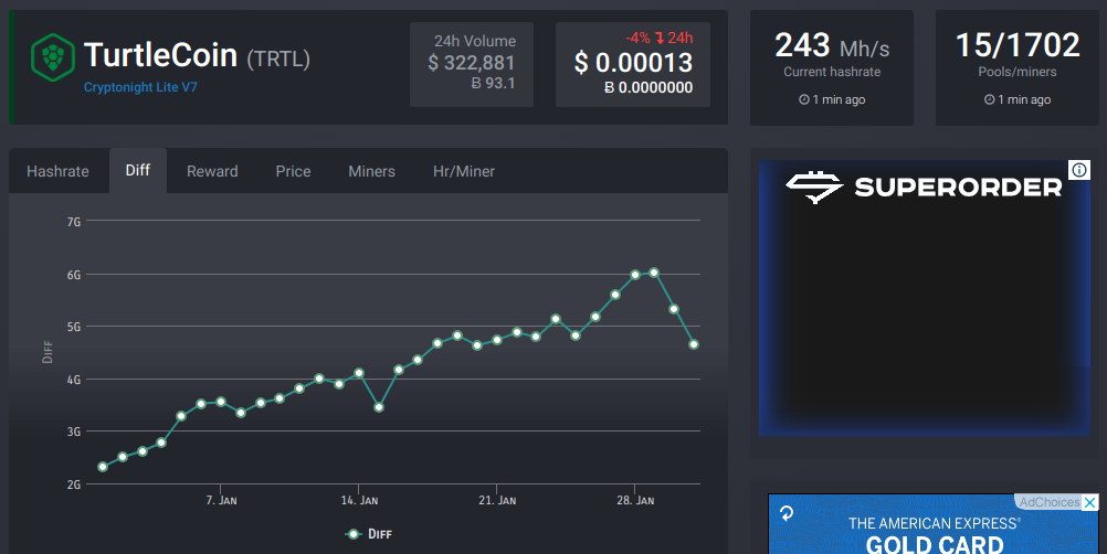 한달 전에 비해 난이도가 거의 2배로 뛰었고, 그 말은 채굴되는 양이 반으로 줄었다는 뜻입니다. 가뜩이나 요새 가격도 내려 앉았는데, 이렇게 채굴 난이도까지 올라가니 저 역시 이제 그만 둬야하나 하는 생각이 들 정도입니다. 그래서 모네로 말고 다른 코인, 특히 CPU와 GPU로 채굴이 용이한 CryptoNight 알고리즘 계열의 다른 코인들은 어떤가 살펴보니,