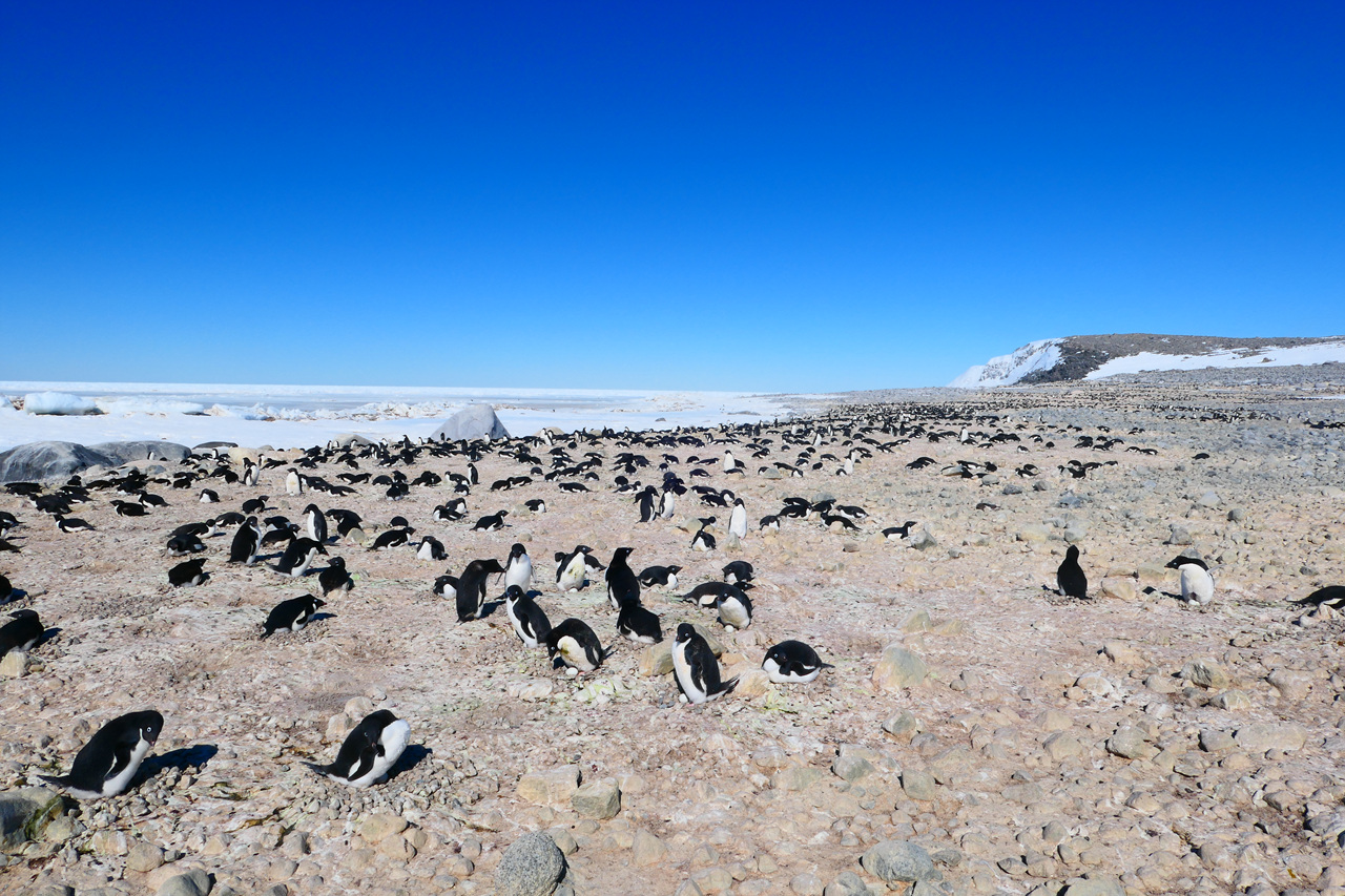 설치중에 시간이 남을때는 펭귄 번식지도 둘러보았다. 아델리펭귄들은 알을 품고 둥지에 납작 엎드려 있었다.