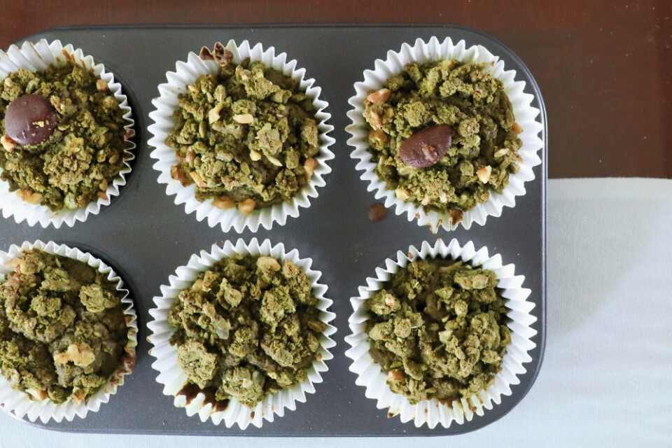 [vegan baking]촉촉한 녹차 위에 바삭한 녹차가 소복히! - 녹차 소보루 쌀 머핀