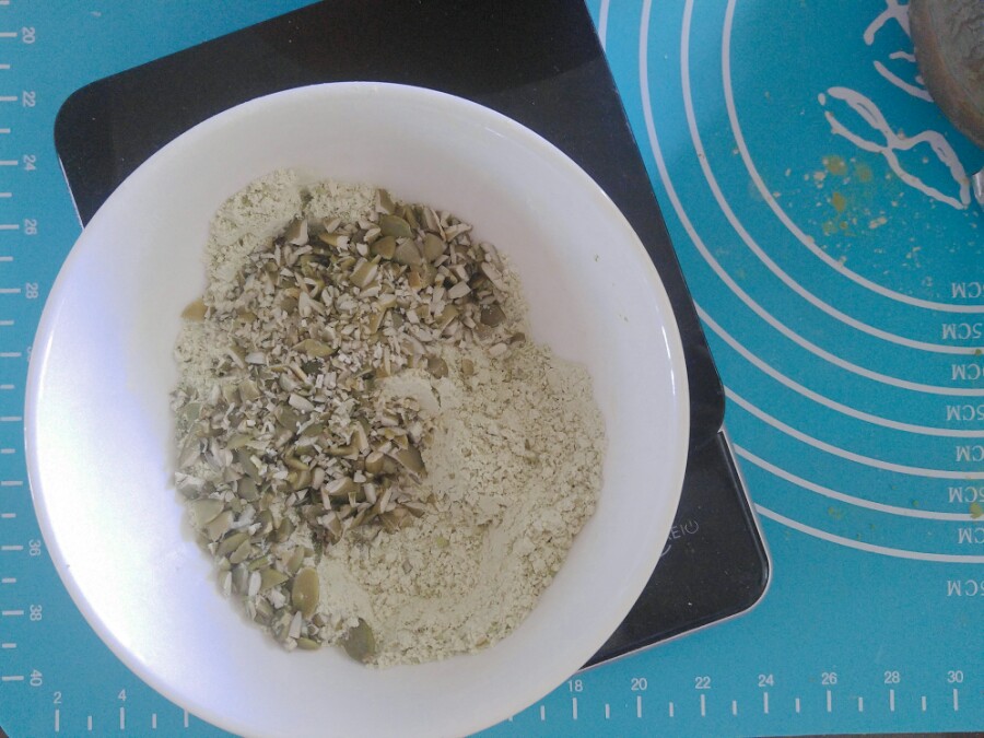 씹히는 맛이 배가 되라고 호박씨와 각종 견과류도 투하! 약간의 조청과 현미유로 가루류를 뭉쳐주세요.