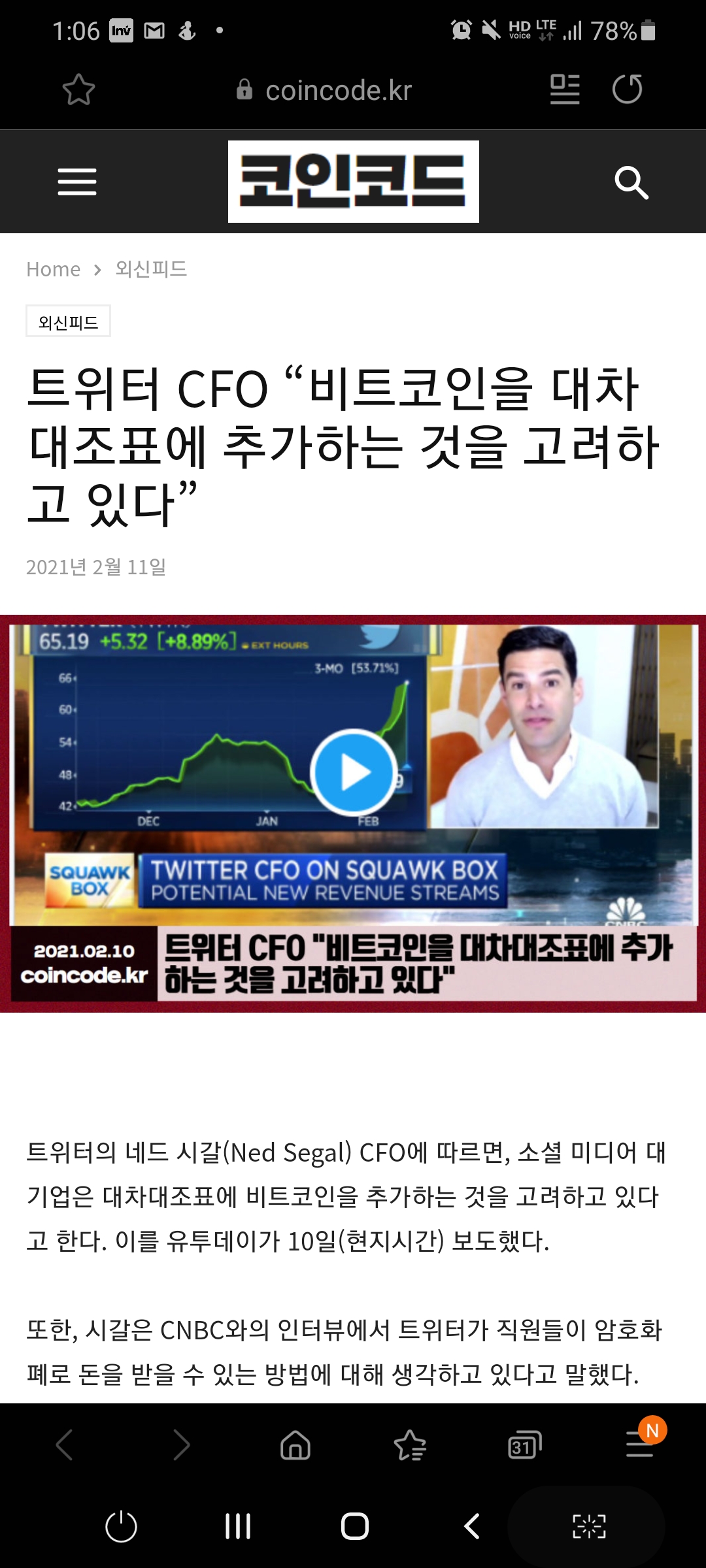 훌륭한 트위터 CFO 대차대조표에 비트코인추가
