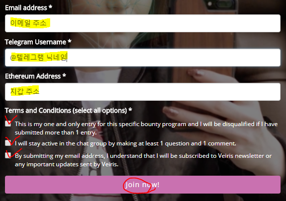 이메일주소, 텔레그램아이디, 지갑주소