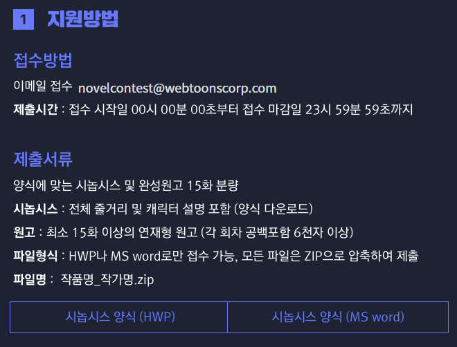 문피아는 연재 형식으로 진행하지만, 네이버는 15화 이상의 원고를 접수하는 형식입니다.