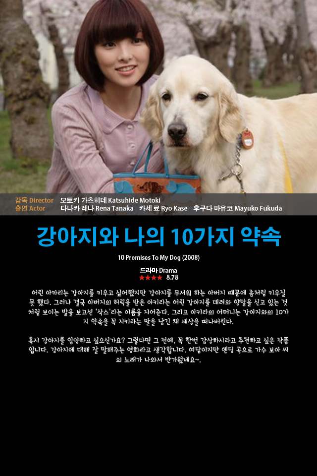 좋은 영화들 소개해주셔서 감사해요. 강아지와 나의 10가지 약속은 꼭 보고싶네요