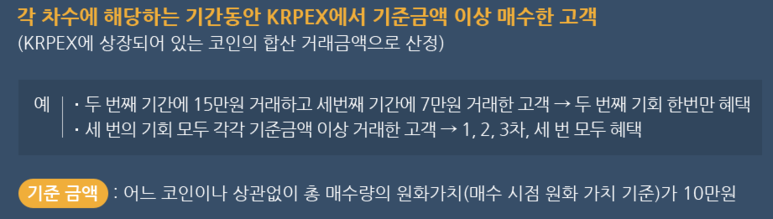 코인 상장 후 기간동안 기준금액 이상 매수한 고객이라네요.