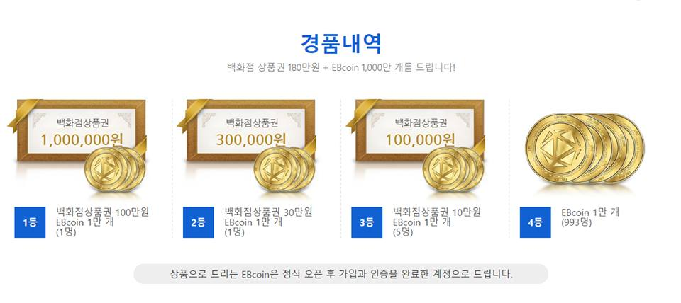 백화점 상품권 180만원 + EB코인 1천만개의 경품을 드려요!