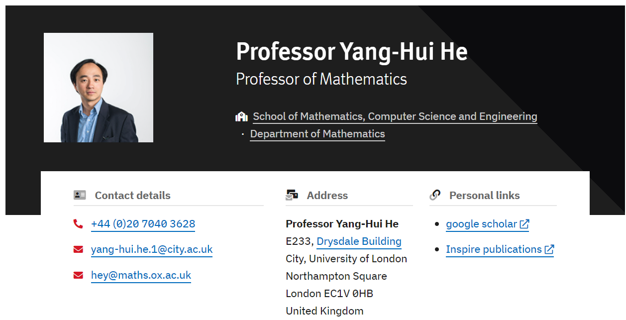 김민형 교수의 책을 읽다가 알게 된 Yang-Hui He 교수님